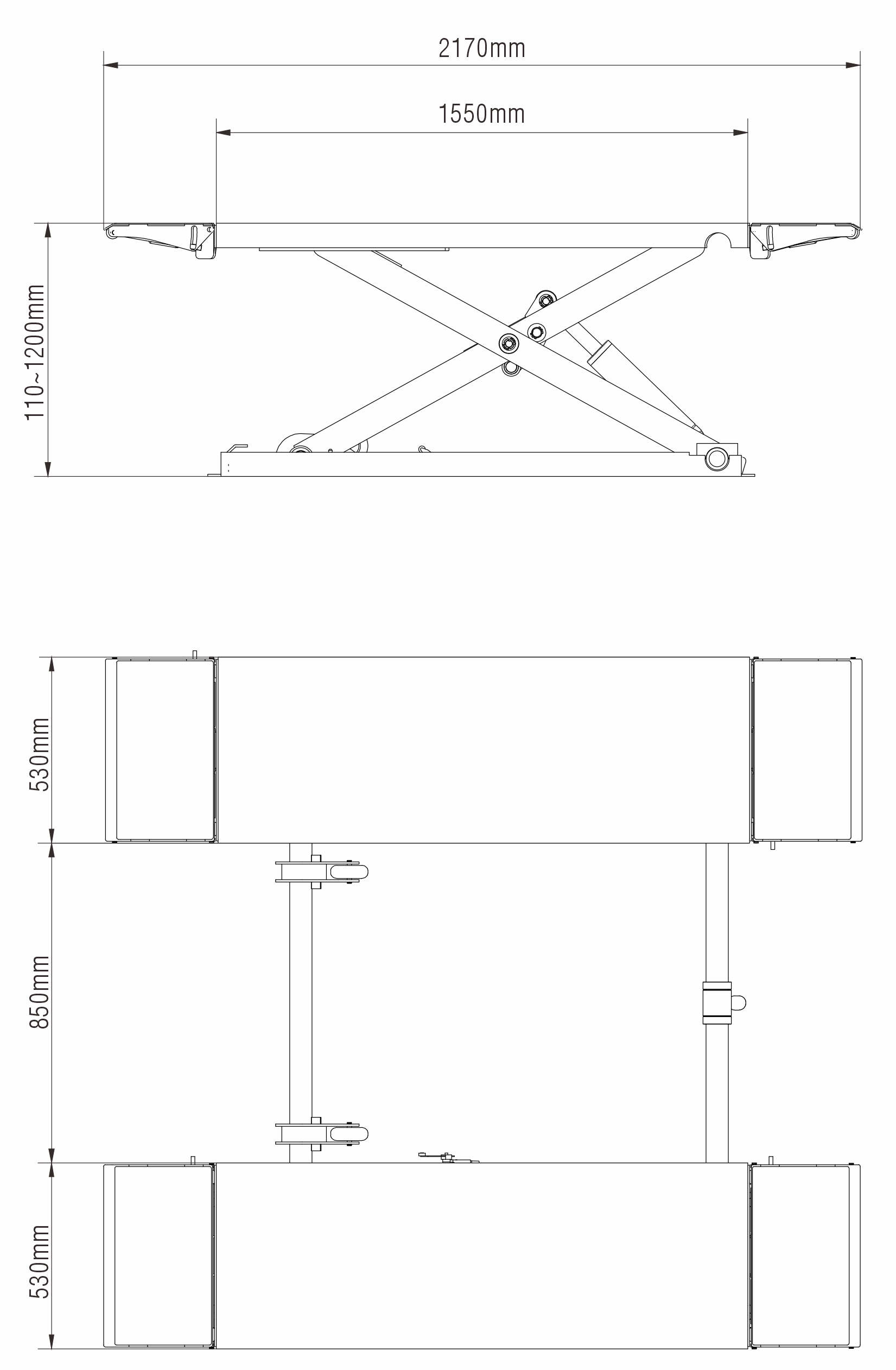 - Largeur de la plateforme 530 mm