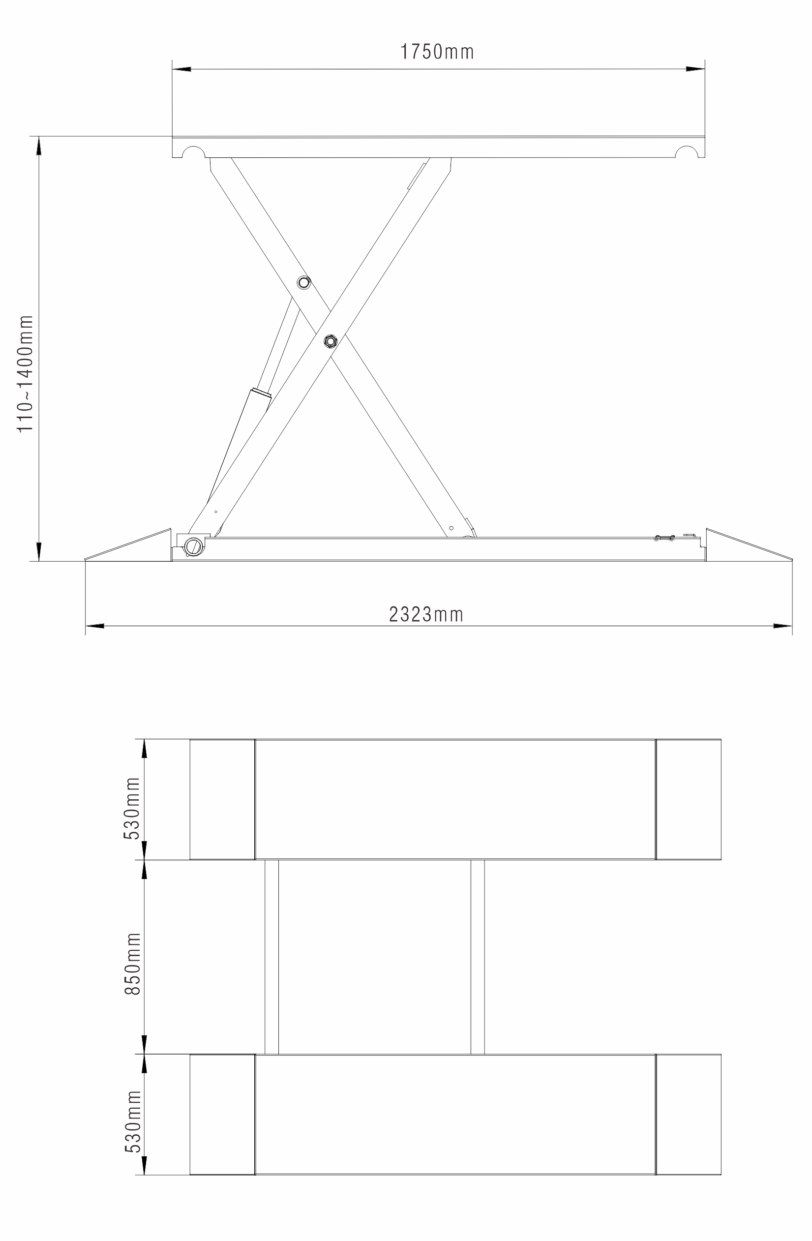 Pont élévateur Professionnel avec 4 vérins hydrauliques hauteur-1.40 mt FEX 3.5 ton